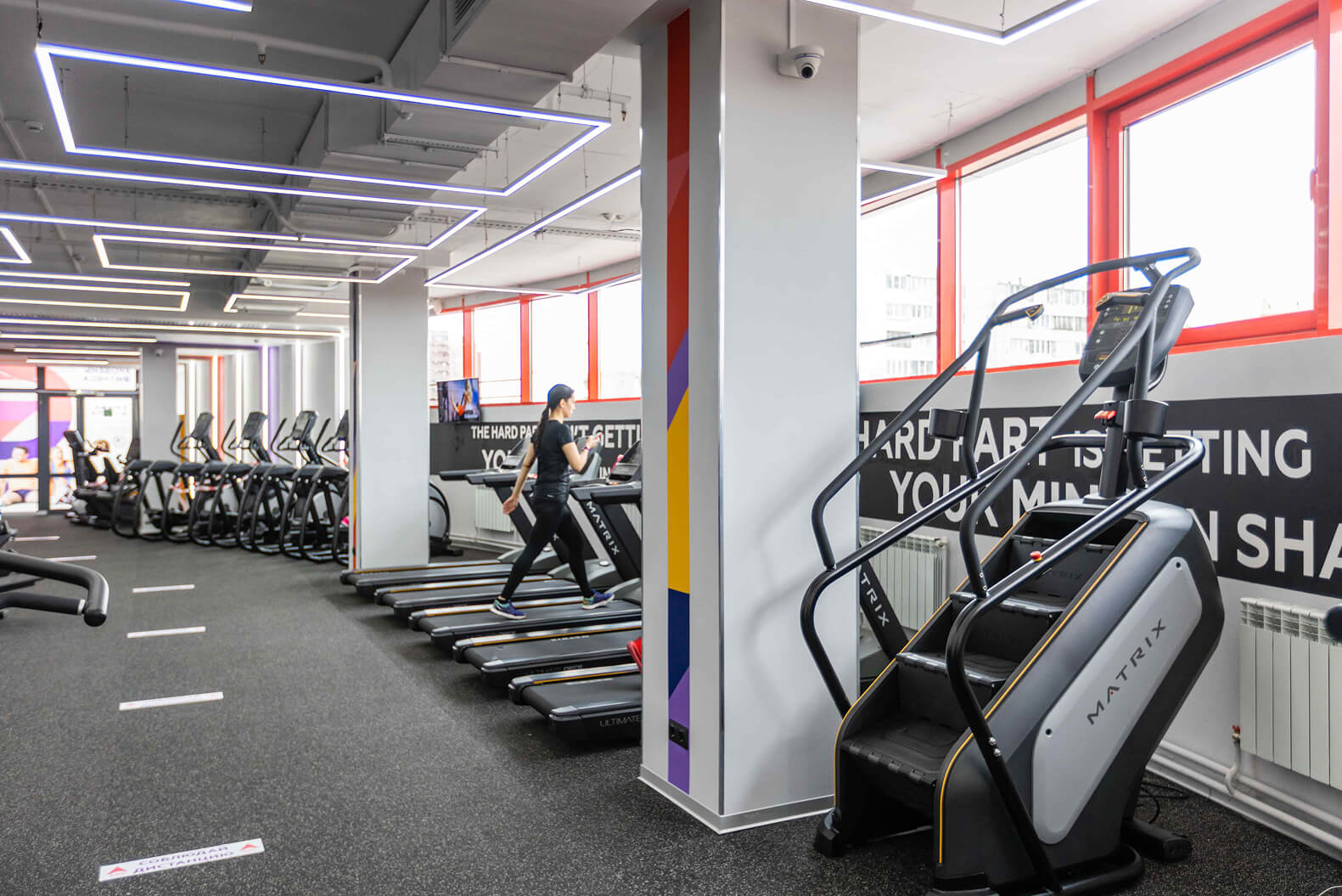 Двухэтажное пространство площадью более 1000 кв. метров впечатлит каждого фитнес-поклонника. Панорамные окна на 2 этаже наполняют клуб естественным дневным светом, что позволяет спортсменам встречать первые лучи солнца или любоваться прекрасными закатами. Оборудование Matrix для кардио, силовых и функциональных тренировок, а также просторные залы для групповых программ.